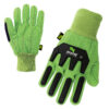 These 18-ounce green cotton/polyester corded gloves feature TPU impact protection on the back of the fingers and hand, a straight thumb, and a knit wrist that prevents loss.